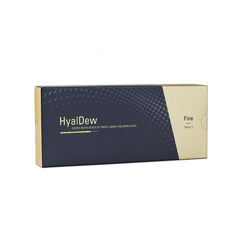 HyalDew Fine presents a new generation of hyaluronic acid fillers with patented “Multi-staged Cross-Linking (MCL)” technology providing a long-lasting esthetic effect. The procedure offers top results when it comes to eye bag removal and skin brightening. HyalDew Fine is used for filling fine wrinkles. The filler has a low HA cross-linking rate and is injected into the middle dermis.